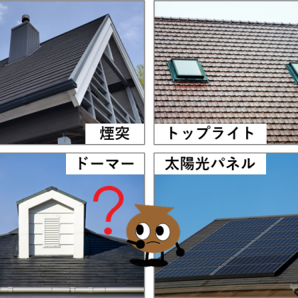 【坪拾い】屋根伏せ:屋根上に物が載っているときは(トップライト・煙突・ドーマー・太陽光パネルなど)