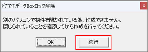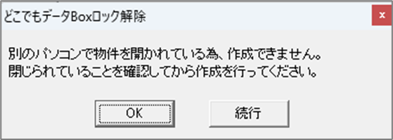 どこでもデータBOXでデータを共有している場合でも、同一物件を同時に編集できるのは1ユーザーまでとなります。