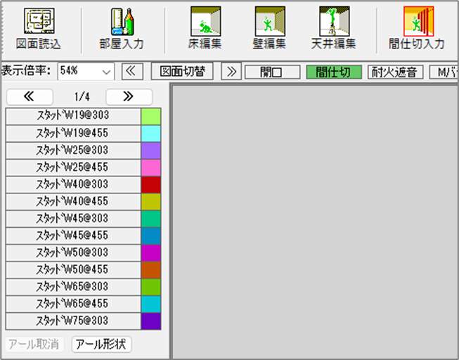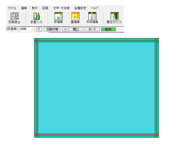 旧モードでは部屋に対して1種類の壁貼物しか設定が出来ませんが、新モードでは壁ボードと同じように壁貼物が入力されるため、削除や種類の変更、上下の貼り分けなどの編集の幅が広がります。
