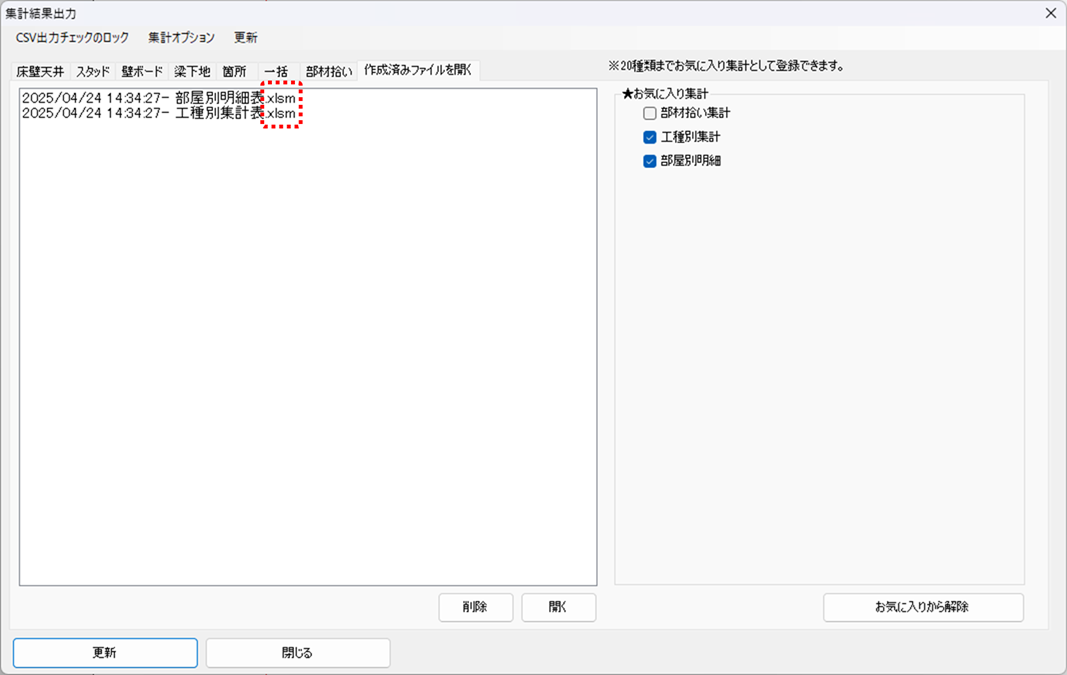 工種別集計や部屋別明細・貼物本数表などにはマクロが組まれており、その関数がエクセルのバージョンによって異なります。ご使用のエクセルのバージョンに合わせてチェックを付け替えて下さい。