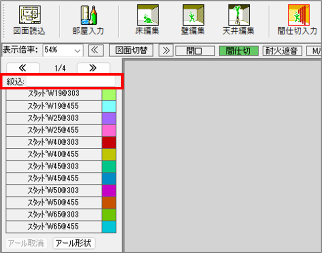 理由:「間仕切入力は項目が多くてページをめくるのが大変なので、スタッドの太さで絞込して使ったりしています!たとえば「65」と打ち込むと太さ65の間仕切だけで表示されるので、便利です。」とのこと。