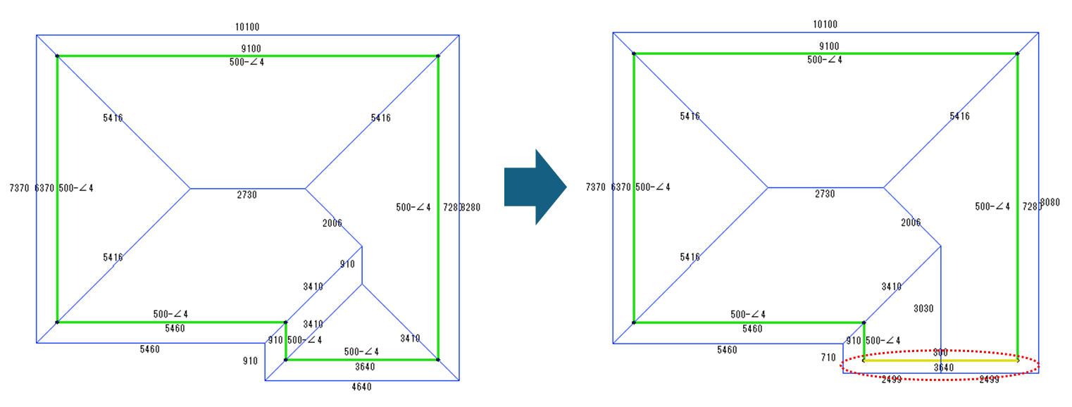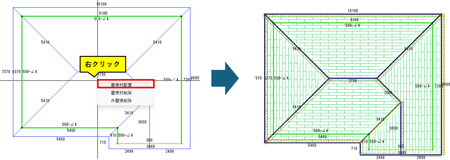 屋根材を配置した後に屋根を修正する場合は、屋根材を削除→屋根伏せ図を修正→屋根材を再配置しましょう。