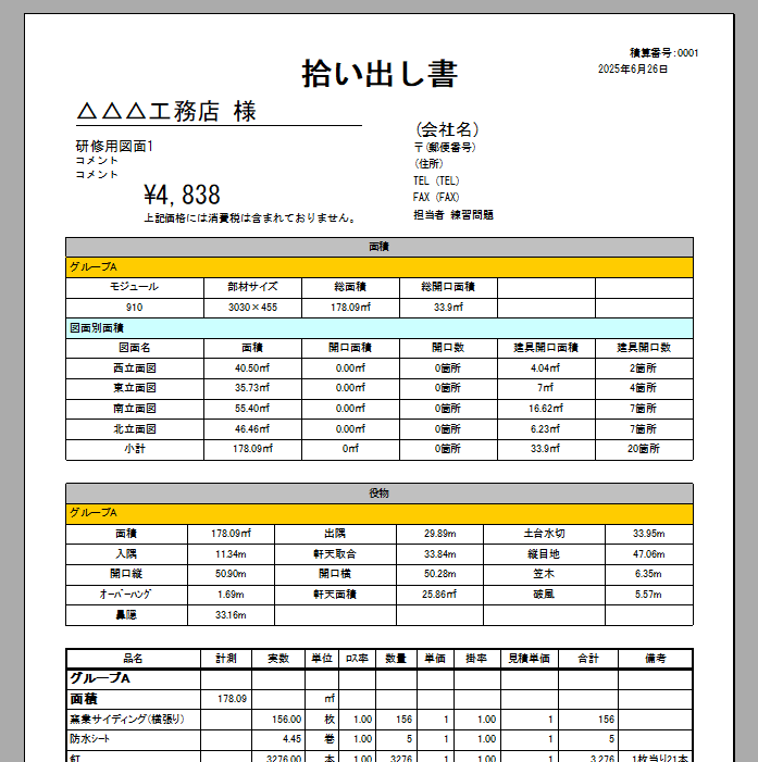 詳しくはこちら 【坪拾い】面ごとの面積を拾い出し書に印刷する