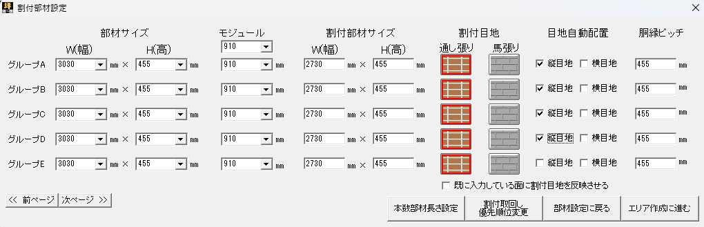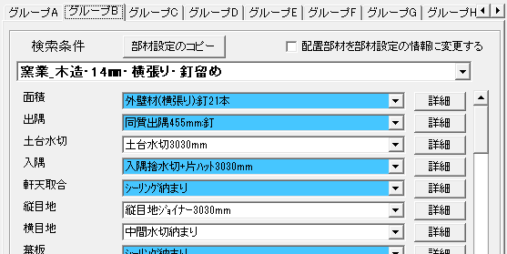 2)グループB以降を使うことになるので、【部材設定】で検索条件を同じように設定しておきます。