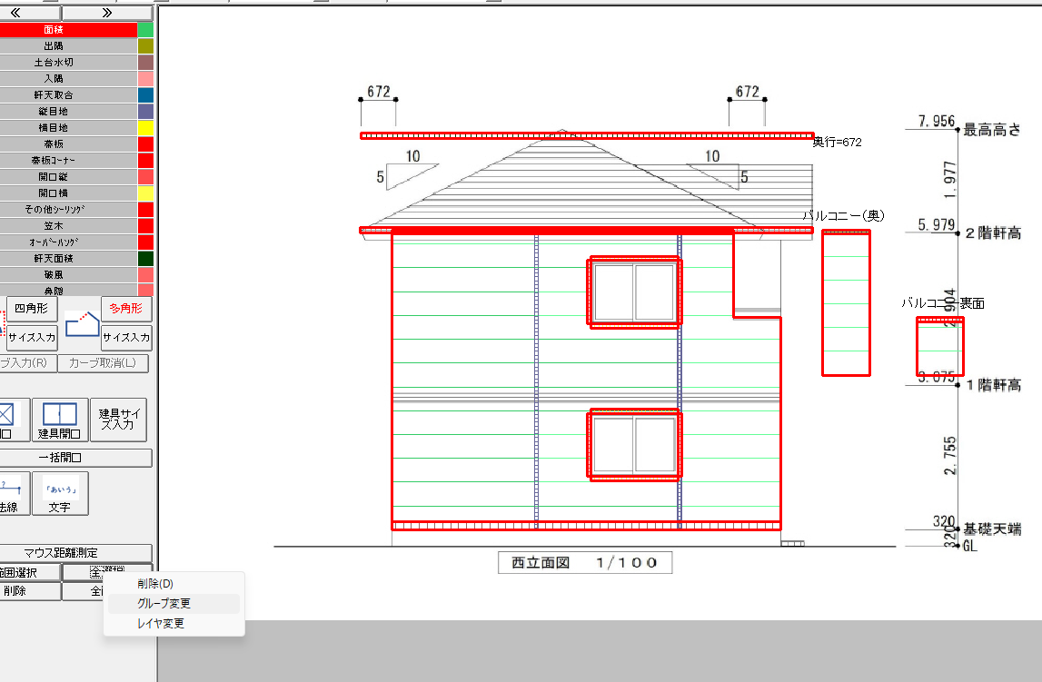 3)図面ごとにグループを変更していきます。【全選択】→【グループ変更】→変更後のグループを選択→【OK】で効率的に変更していきましょう。
