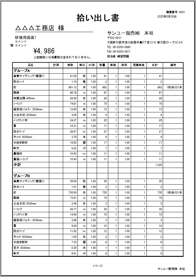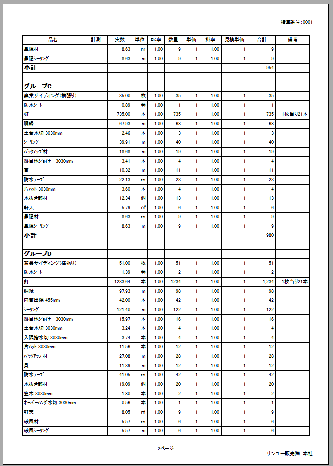 積算結果でまとめたければ【印刷オプション】の「拾い出し表を追加出力する」という機能を使いましょう。