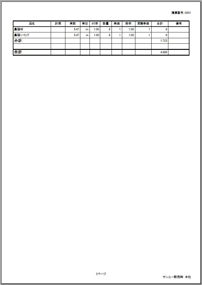 パターン2.図面ごとの面積(㎡数)を確認して積算結果にも表示させたい場合