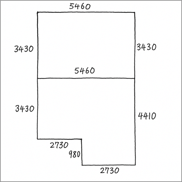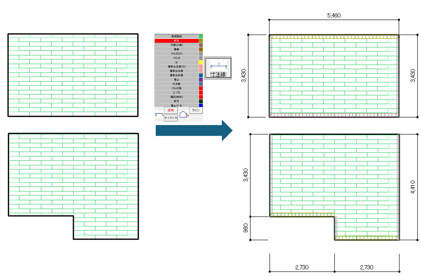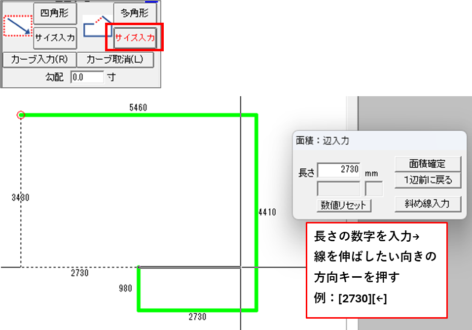 まずは真っすぐな2730mmの下辺を、多角形サイズ入力します。