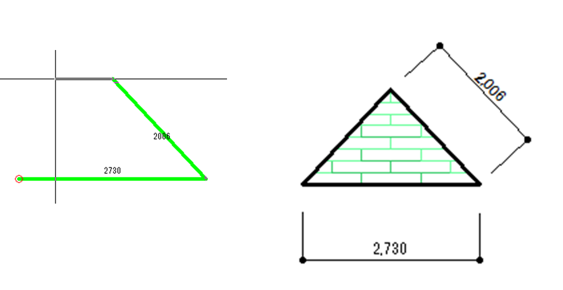 例のような三角形の情報があれば、斜め線の入力方法は二通りあります。