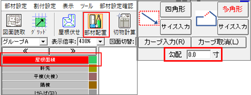 【部材配置】モードに入ります。「屋根面積」を選択します。