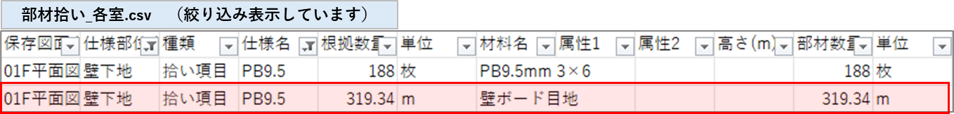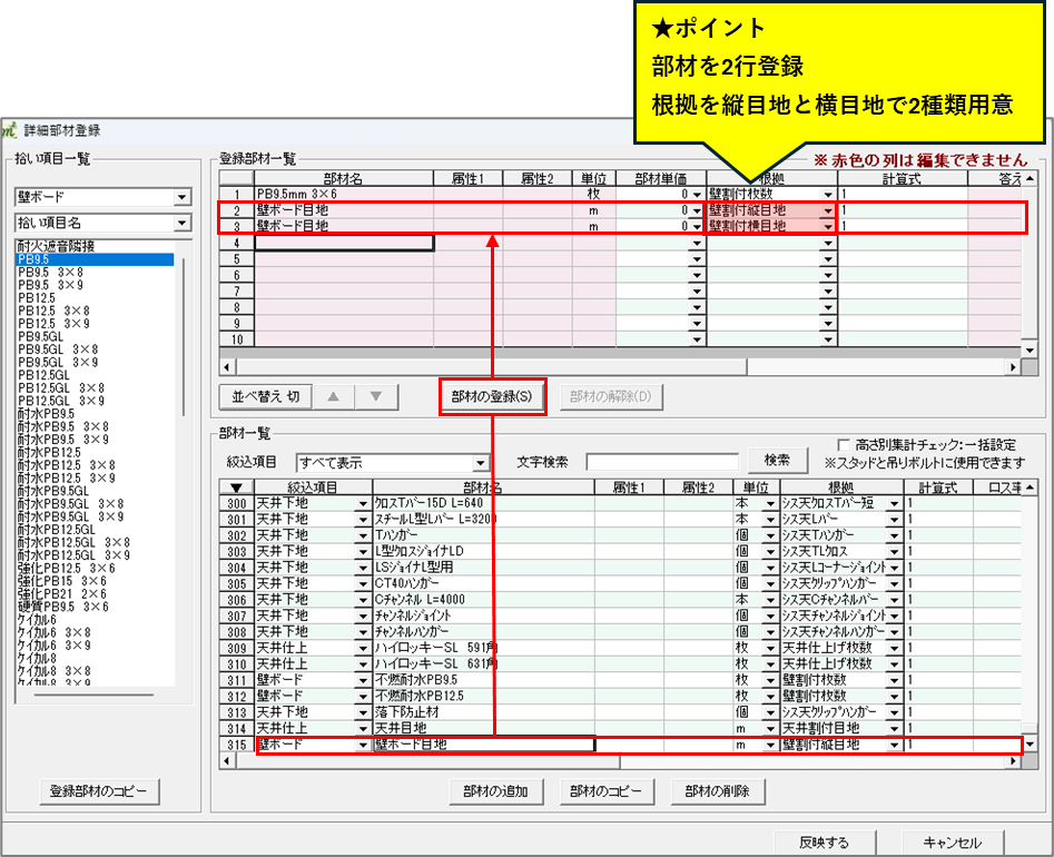 ポイントとして、縦目地と横目地両方拾う場合は、同じ部材を2行登録します。