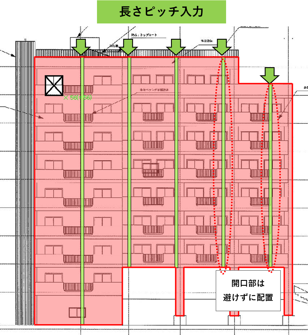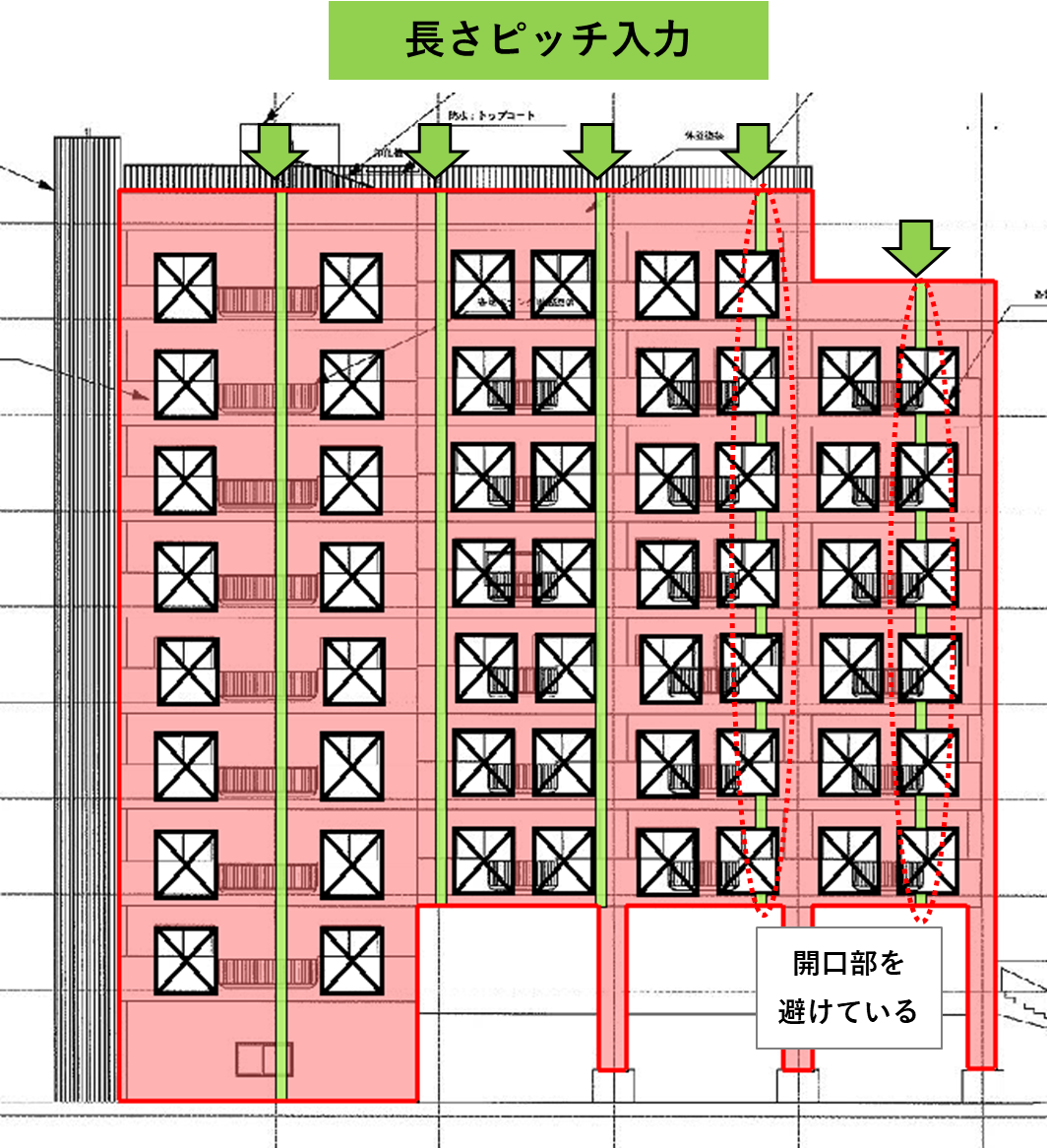 ・(開口の場合)面積の長さピッチ入力に対して開口部分を避けることができない。※