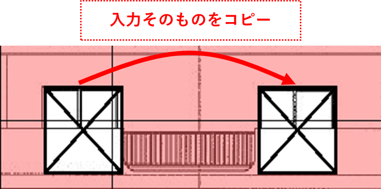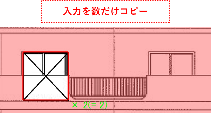 数値指定コピーだと開口部分にも配置されてしまうため、コピーを使うのがオススメです。