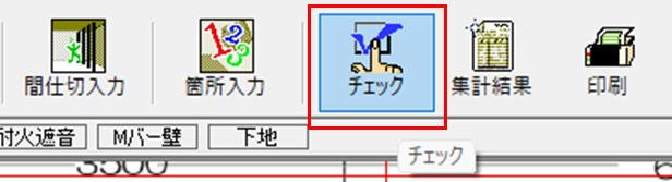 先ほど確認した図面を開き、画面上部の【チェック】ボタンを押します。