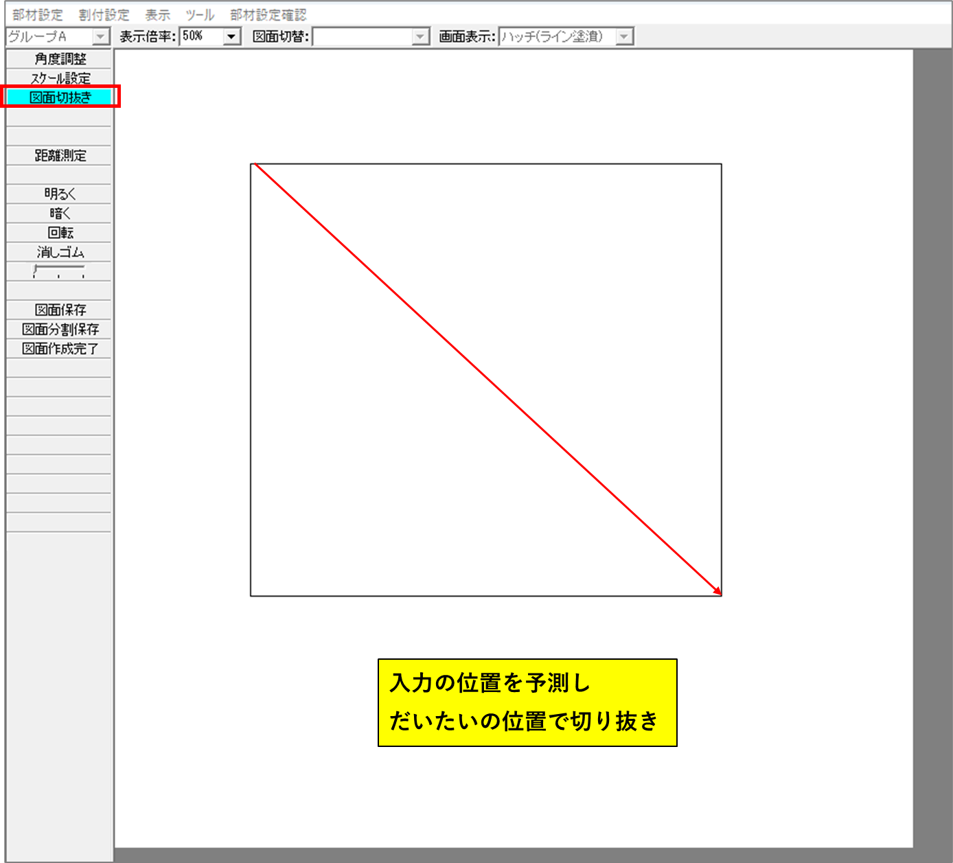 加工画面に入ります。【図面切抜き】を選択します。