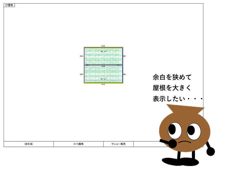 今回は拾った物件が小規模なため屋根も小さく表示されてしまい、印刷時の余白が気になる様子。