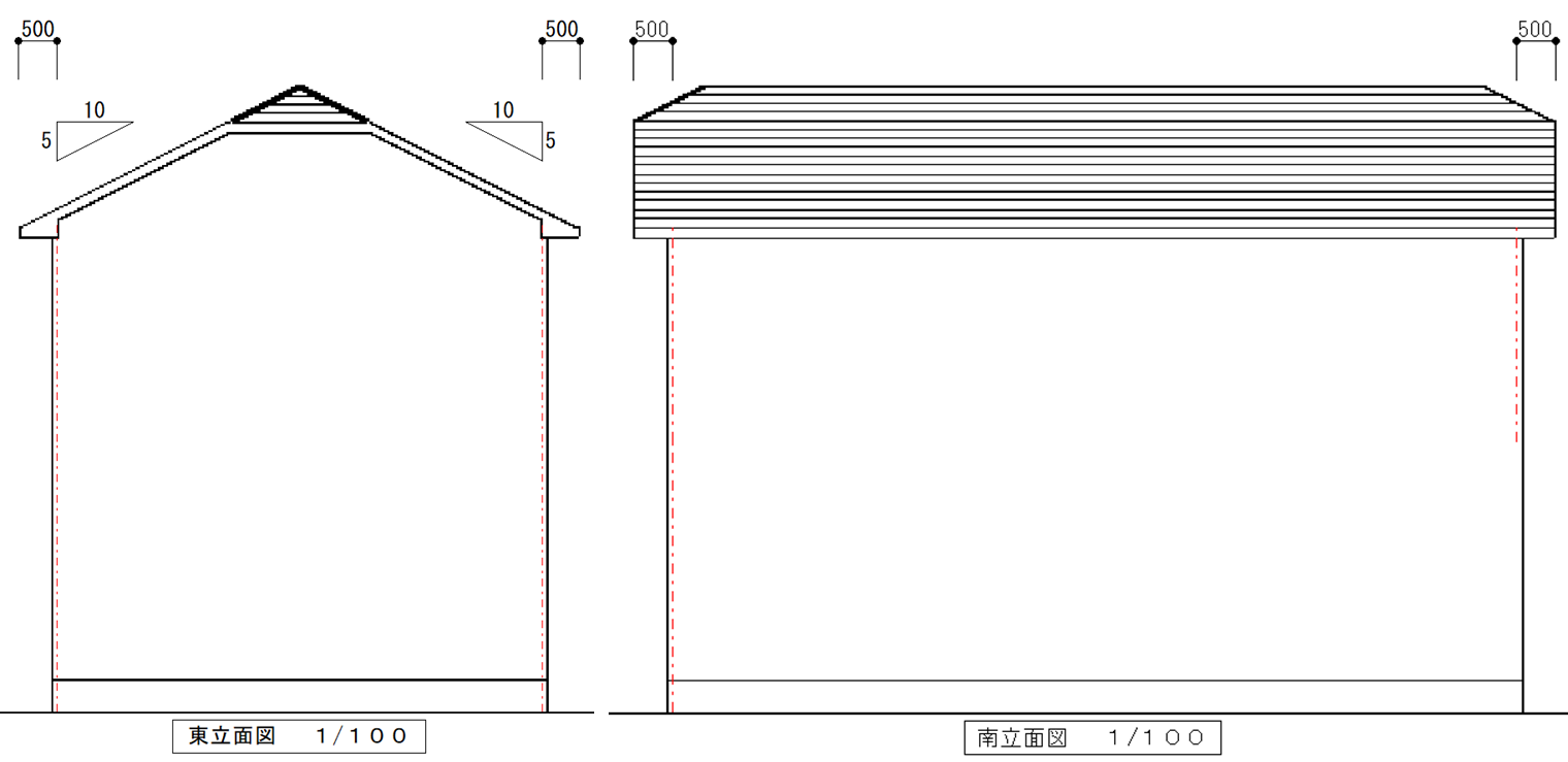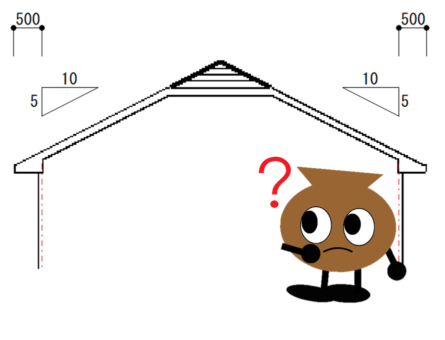 下図のようなシンプルな半切妻屋根を例としてご説明します。