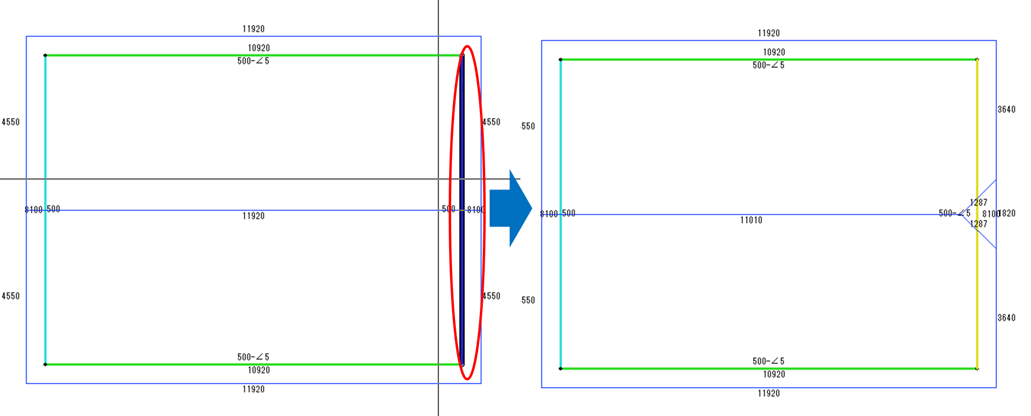 半切妻にしたい部分の外壁線を選ぶと形状が変わります。