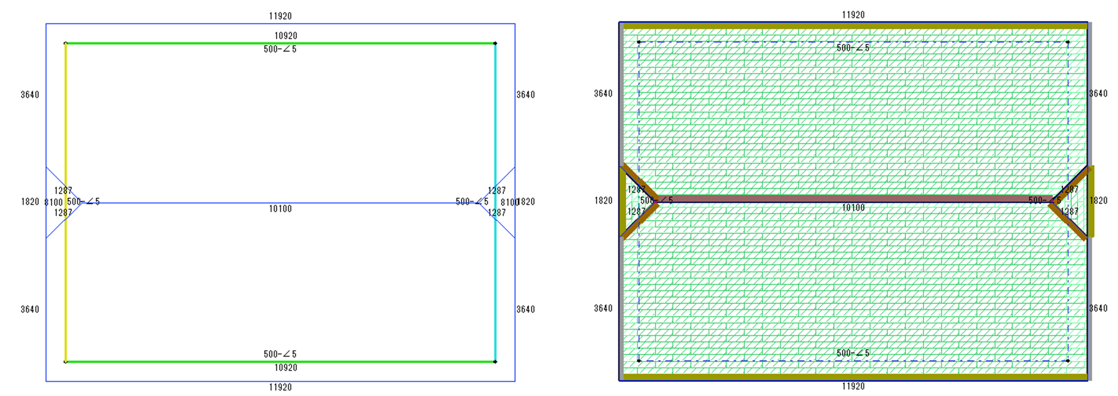 今回の例の場合は東西面が半切妻ですので、西側も同様に設定したら完成です。